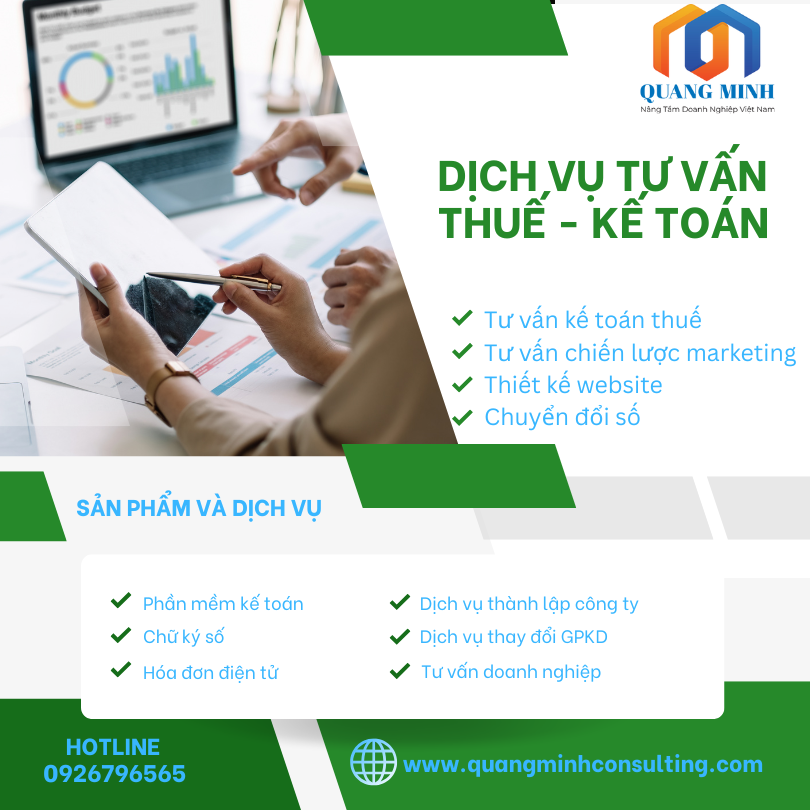 Quang Minh Consulting  hiện đang là công ty dịch vụ kế toán hàng đầu. Tại đây chúng tôi mang đến phần mềm kế toán chuyên nghiệp, phù hợp với mọi loại hình doanh nghiệp từ nhỏ đến lớn, giúp quản lý tài chính doanh nghiệp hiệu quả, tiết kiệm chi phí và hạn chế tối đa sai sót trong công tác kế toán.